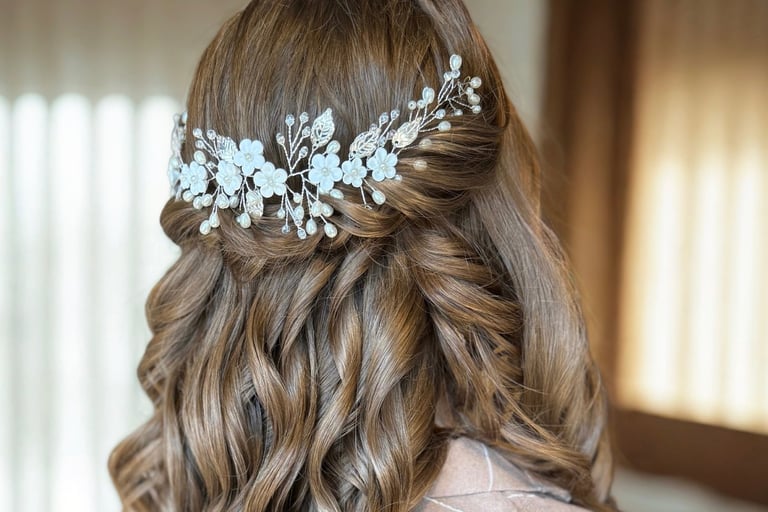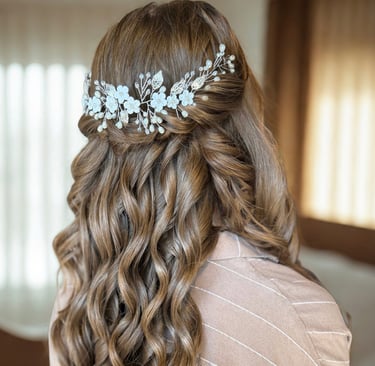 A personalized bridal hair design — from elegant updos to soft cascading waves — created to complement your dress, veil, and personality.